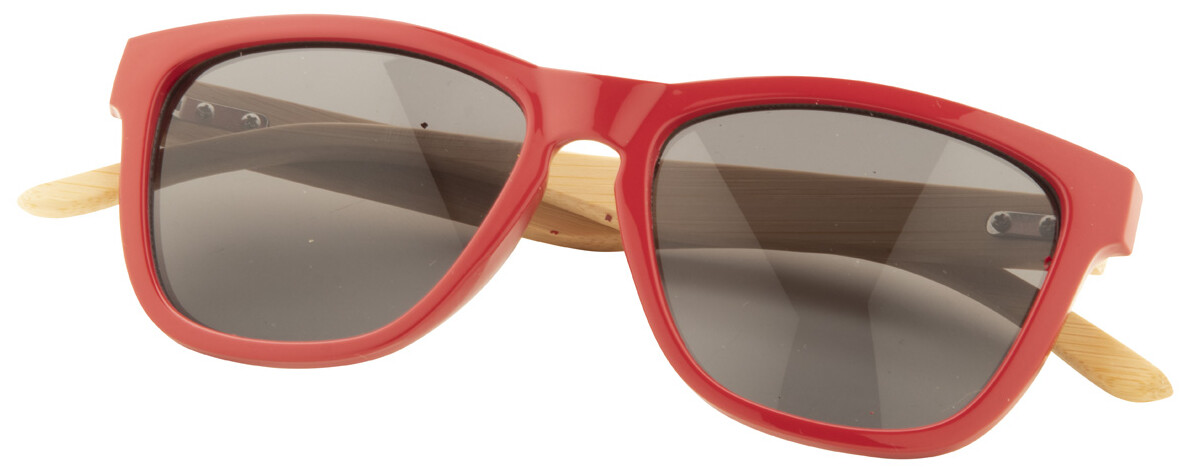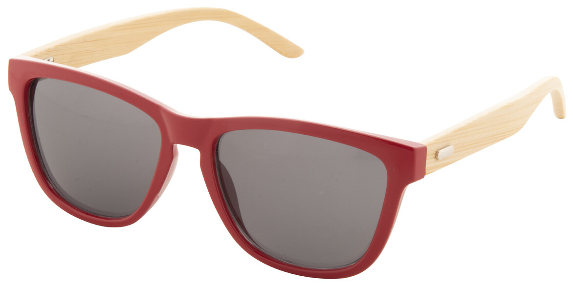 Sluneční brýle s barevnými plastovými obroučkami a bambusovými nožičkami. S ochranou UV 400.
