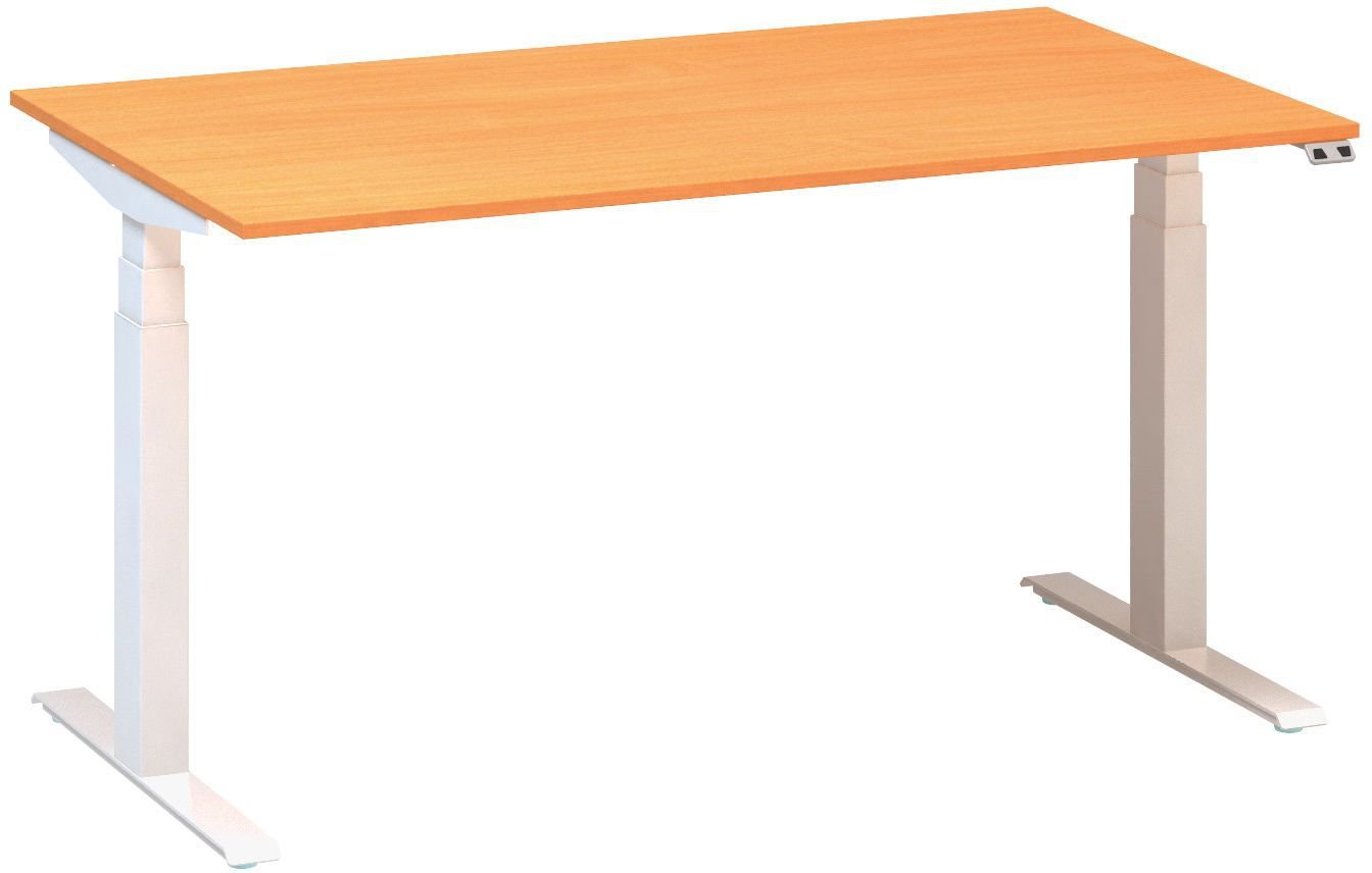 ALFA UP, výškově stavitelný stůl, 1400*800 mm, RAL9010 bílá, buk Bavaria