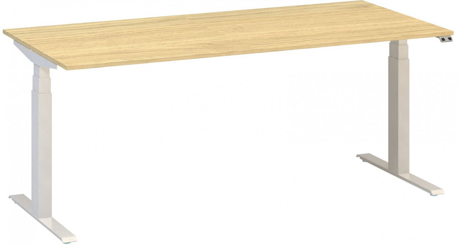 ALFA UP, výškově stavitelný stůl, 1800*800 mm, RAL9010 bílá, dub Vicenza