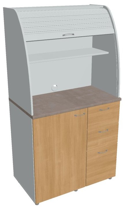 Dvě police ve vrchní části kuchyňky poskytují dostatečnou kapacitu pro vaše skleničky, hrnky či talíře. Na pracovní desku můžete umístit např. kávovar a kabelovou průchodkou v zadní části vyvedete přívodní kabel z prostoru kuchyňky.