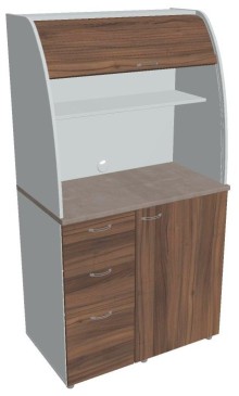 Dvě police ve vrchní části kuchyňky poskytují dostatečnou kapacitu pro vaše skleničky, hrnky či talíře. Na pracovní desku můžete umístit např. kávovar a kabelovou průchodkou v zadní části vyvedete přívodní kabel z prostoru kuchyňky.