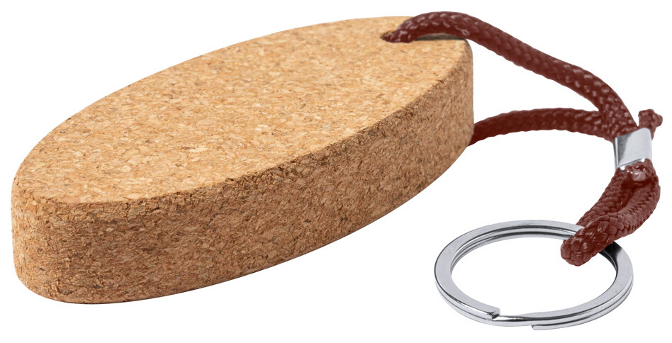 Plovoucí přívěsek na klíče z přírodního korku se šňůrkou a kovovým kroužkem.