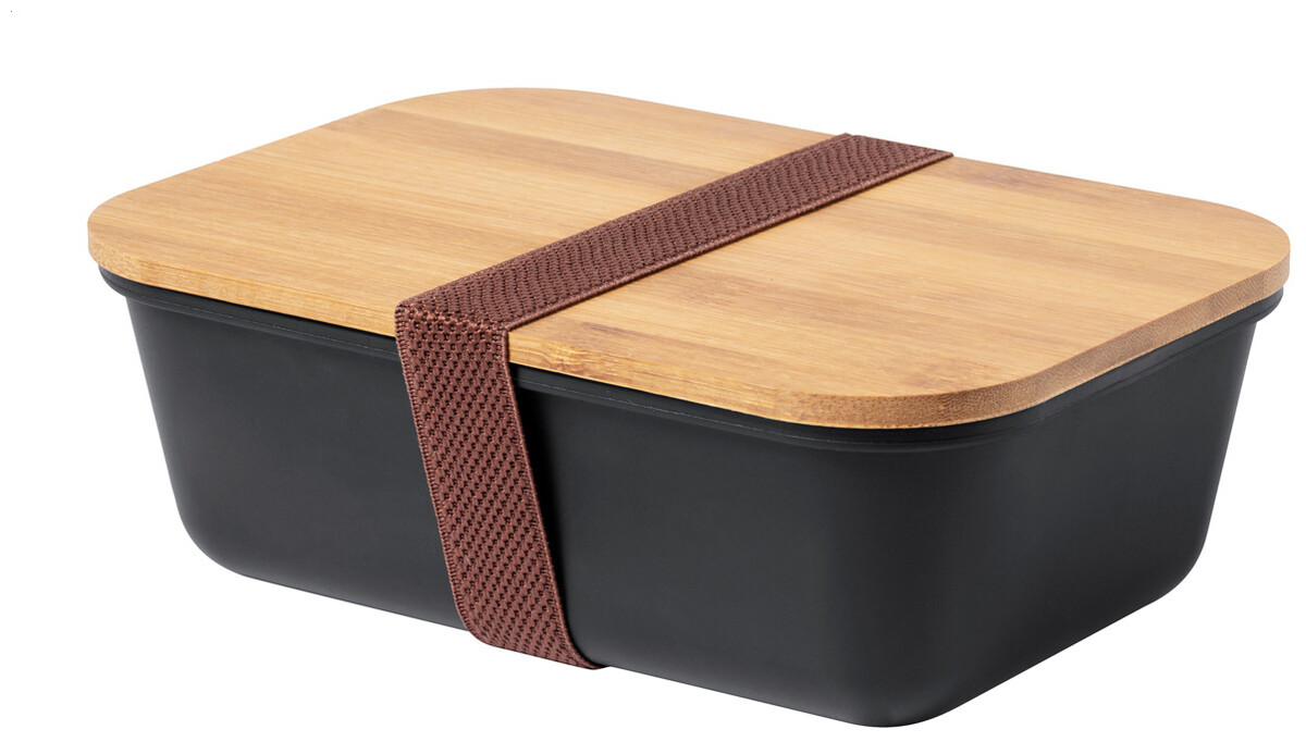 Box na jídlo z PP plastu s bambusovým víkem a elastickým páskem. 1000 ml.