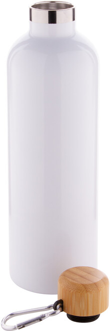 Dvoustěnná nerezová termoska s bambusovým uzávěrem a karabinkou, 500 ml.