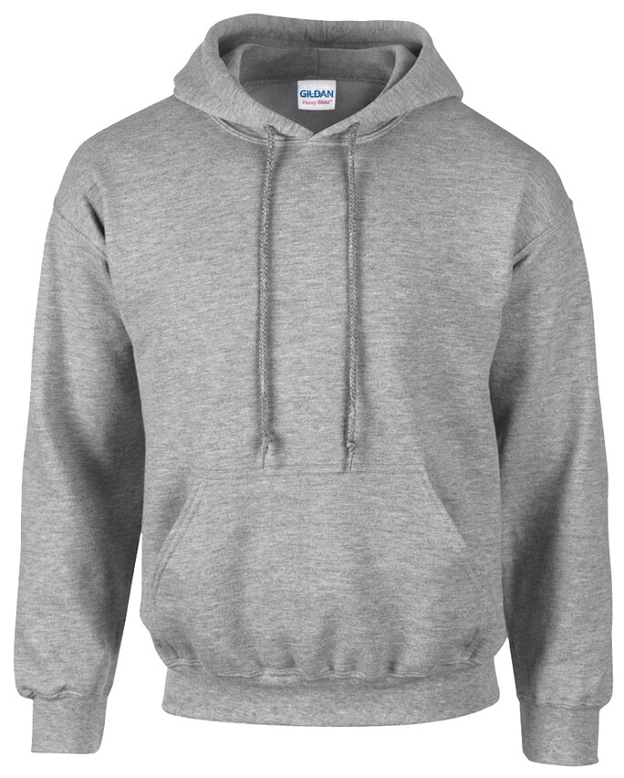 Mikina s kapucí z 50% bavlny a 50% polyesteru s přední kapsou. 271 g/m2 (bílá 257 g/m2). Produkt značky Gildan.