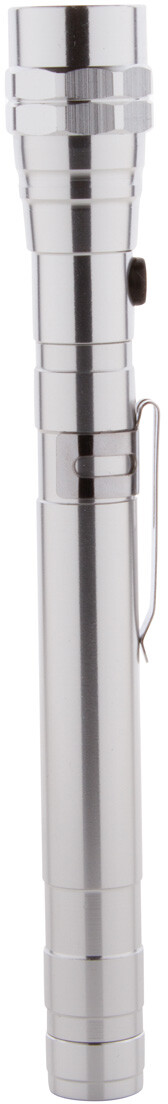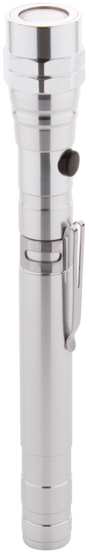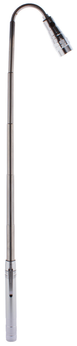 3 LED hliníková svítilna s výsuvnou a flexibilní hlavou, magnetem nahoře a kovovou boční sponou. Včetně knoflíkových baterií. Max. délka: 57 cm.