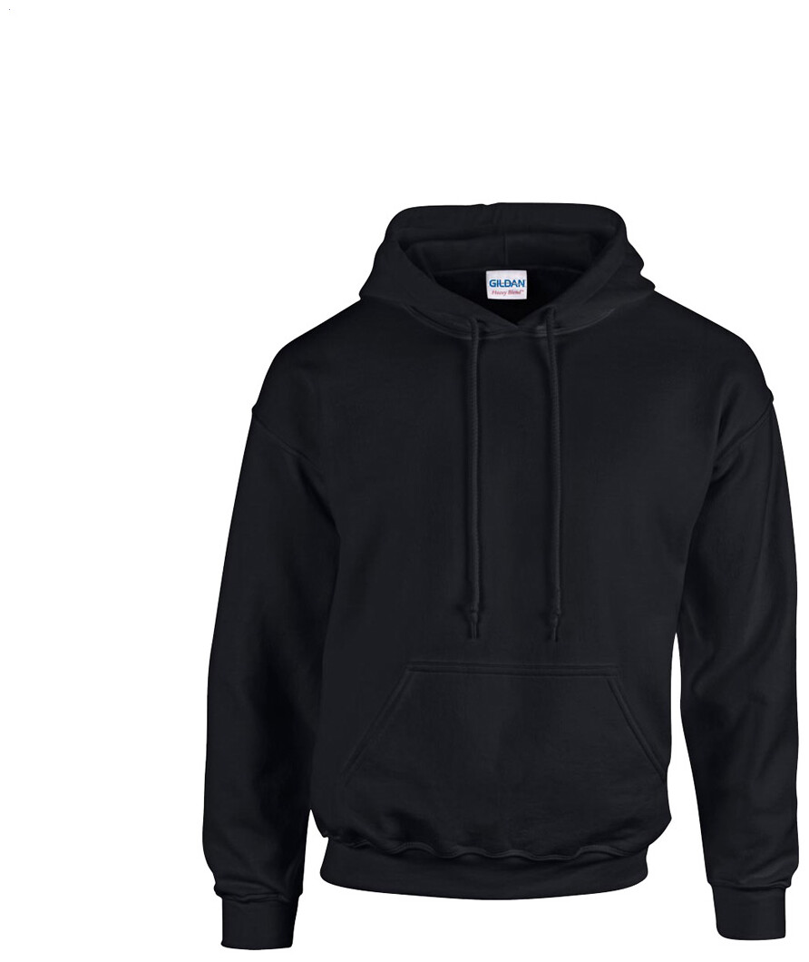 Mikina s kapucí z 50% bavlny a 50% polyesteru s přední kapsou. 271 g/m2 (bílá 257 g/m2). Produkt značky Gildan.