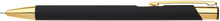 Kovová propiska s pogumovaným povrchem a zlatými doplňky, s efektem laseru v lesklé zlaté barvě. Náplň velkoobsahová, semigelová.