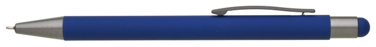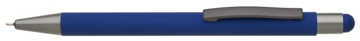 Kovová propiska s hnědo-černými doplňky, pogumovaným povrchem a touch koncem v barvě těla. Náplň semigel s mikrohrotem.