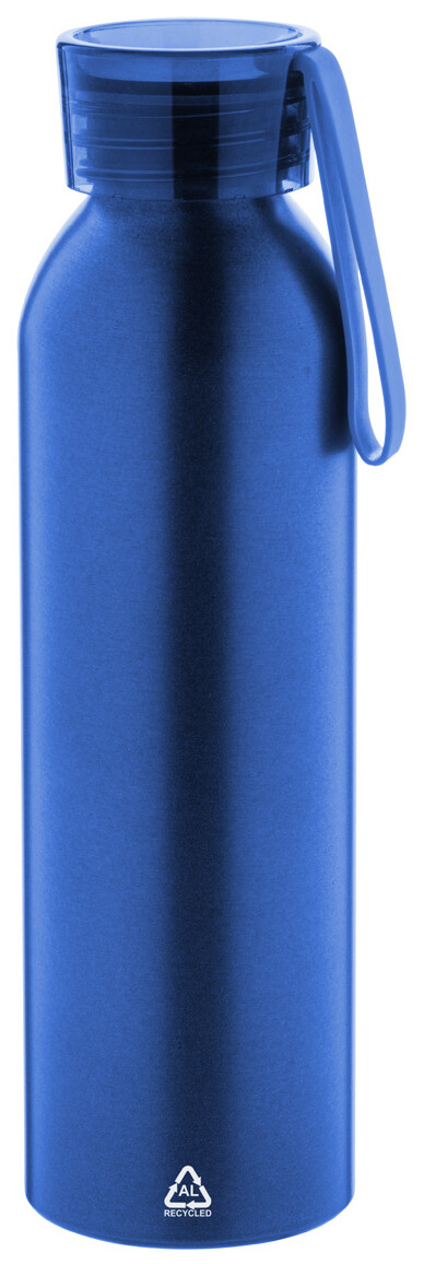 Láhev z recyklovaného hliníku s víčkem v odpovídající barvě a silikonovým popruhem, 600 ml.