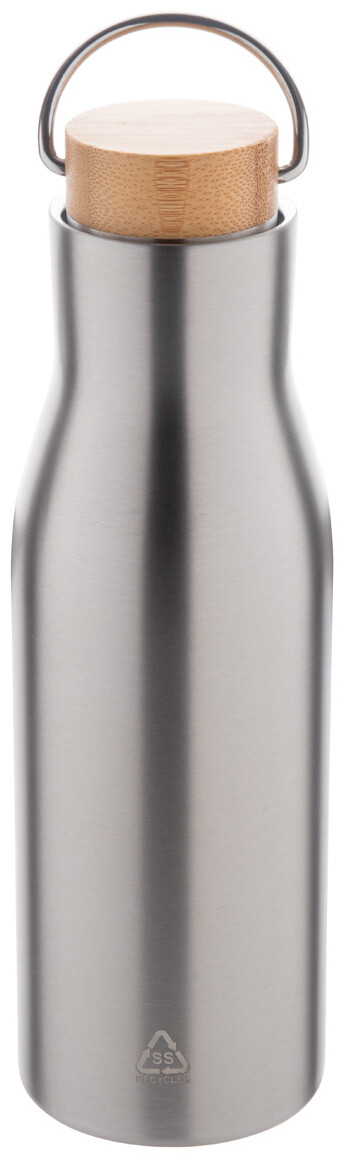 Dvoustěnná nerezová termoska z recyklované nerezové oceli s bambusovým víkem, 500 ml.