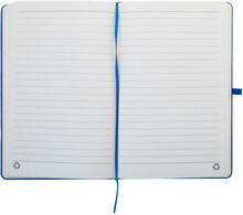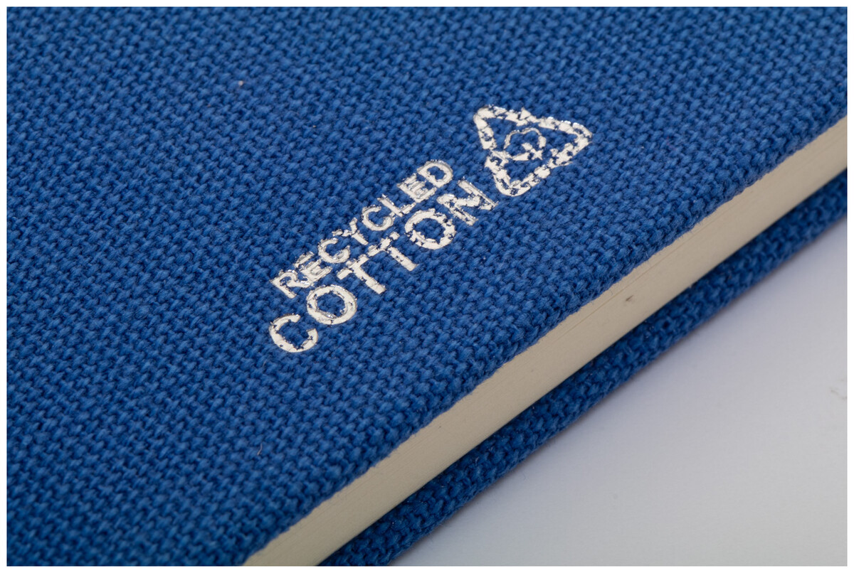 Blok potažený recyklovanou bavlnou s 80 linkovanými listy z recyklovaného papíru. Se záložkou v odpovídající barvě, gumičkou a držákem na pero. Velikost A5.