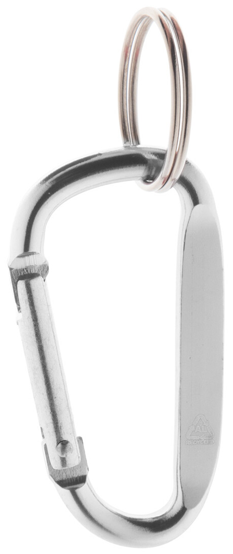 Karabina z recyklovaného hliníku s kovovým kroužkem na klíče.