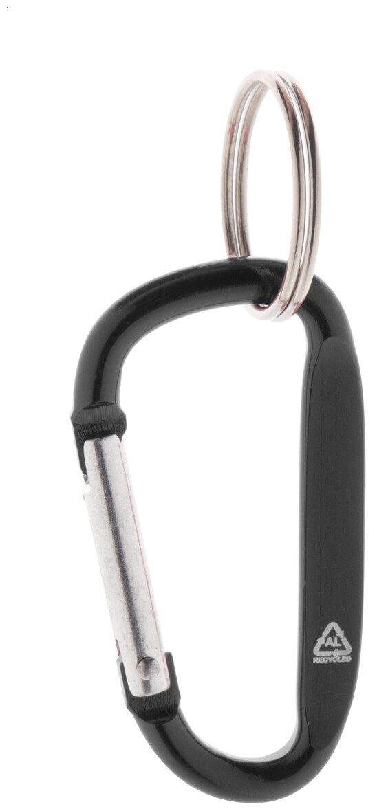 Karabina z recyklovaného hliníku s kovovým kroužkem na klíče.