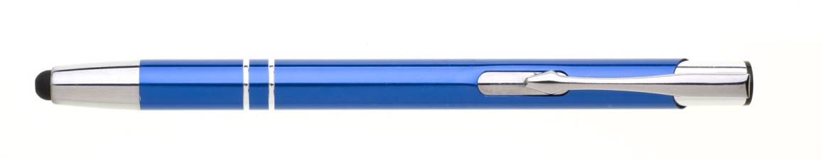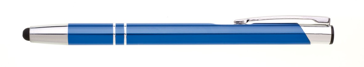 Modrá varianta oblíbené propisky ORIN, tentokrát s ukončením TOUCH. Lesklé tělo se dvěma stříbrnými proužky a stříbrnými doplňky.