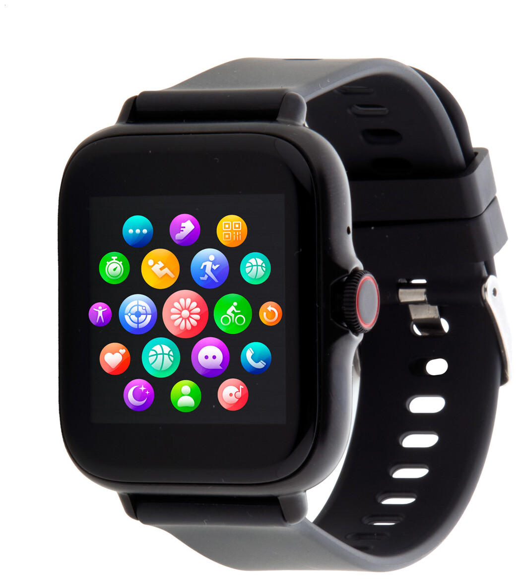 Multifunkční bezdrátové chytré hodinky v kovovém pouzdře s 1,44" dotykovým TFT displejem, dobíjecí baterií 150 mAh a silikonovým řemínkem. Disponují několika funkcemi pro sledování zdravotního stavu a chytrými funkcemi, jako je například měření srdečního tepu, krevního tlaku a kyslíku, kromě mnoha dalších. Lze jej připojit k chytrým telefonům pomocí bezplatné aplikace dostupné pro systémy iOS a Android. Včetně nabíjecího kabelu USB. Voděodolnost IP65.