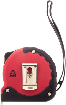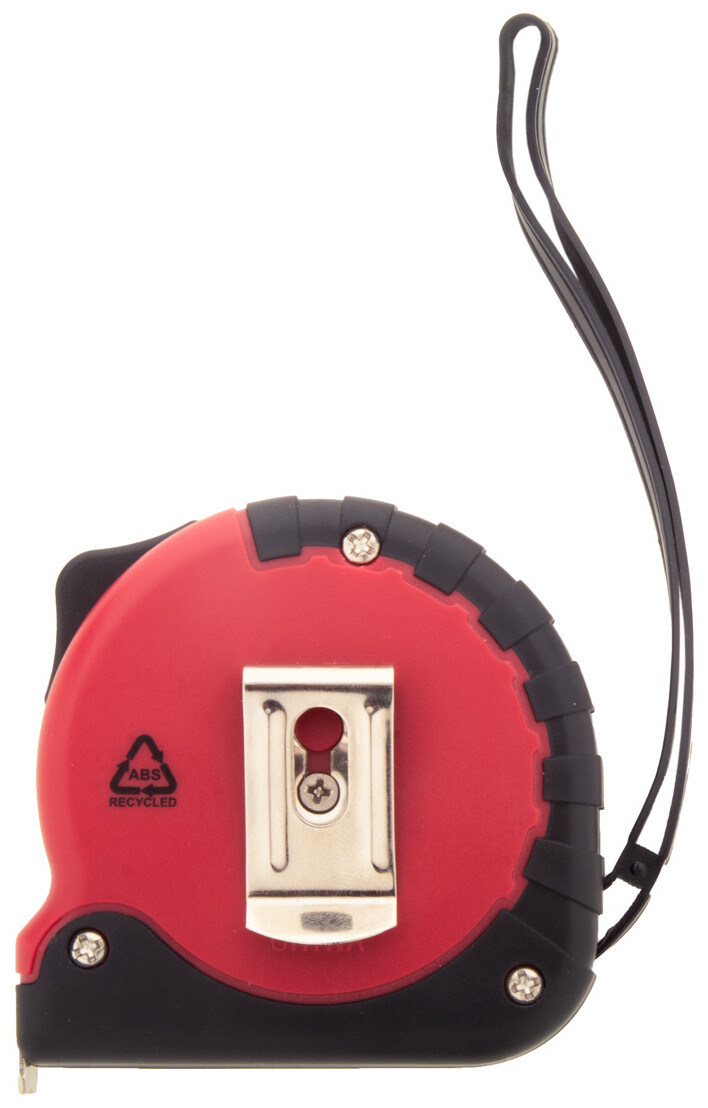 Svinovací metr z recyklovaného ABS plastu s funkcí zámku, kovovou sponou a páskem na ruku, 5m.