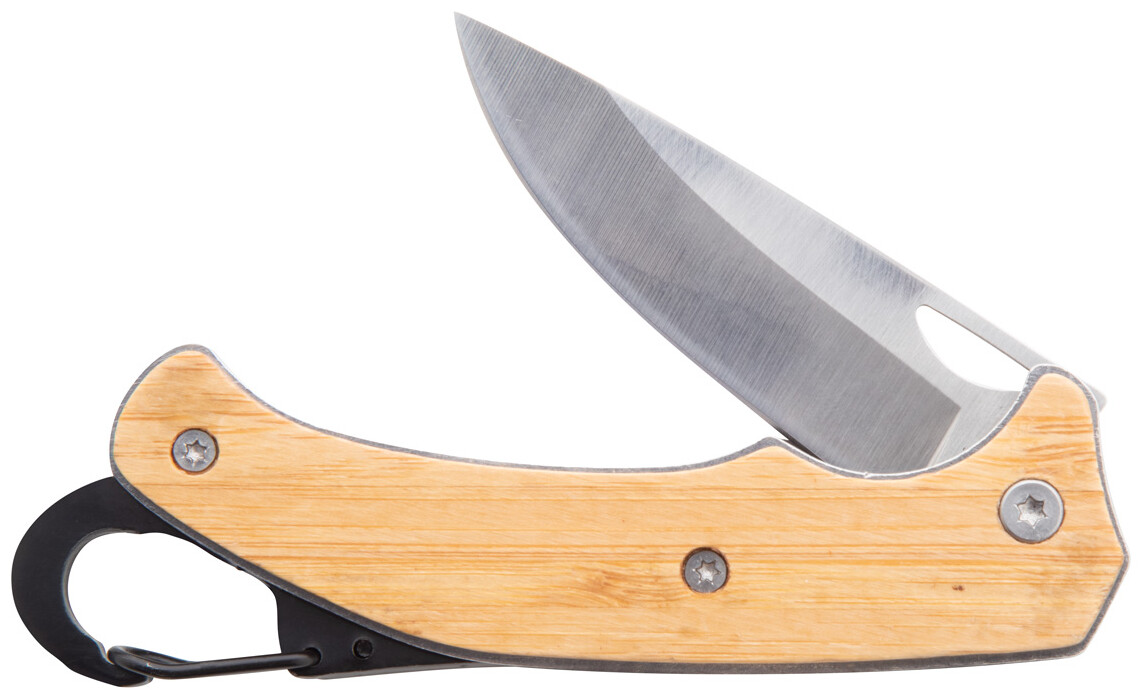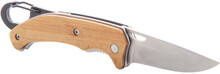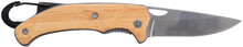 Kapesní nůž z nerezové oceli s bambusovou rukojetí a karabinou. S bezpečnostním zámkem.