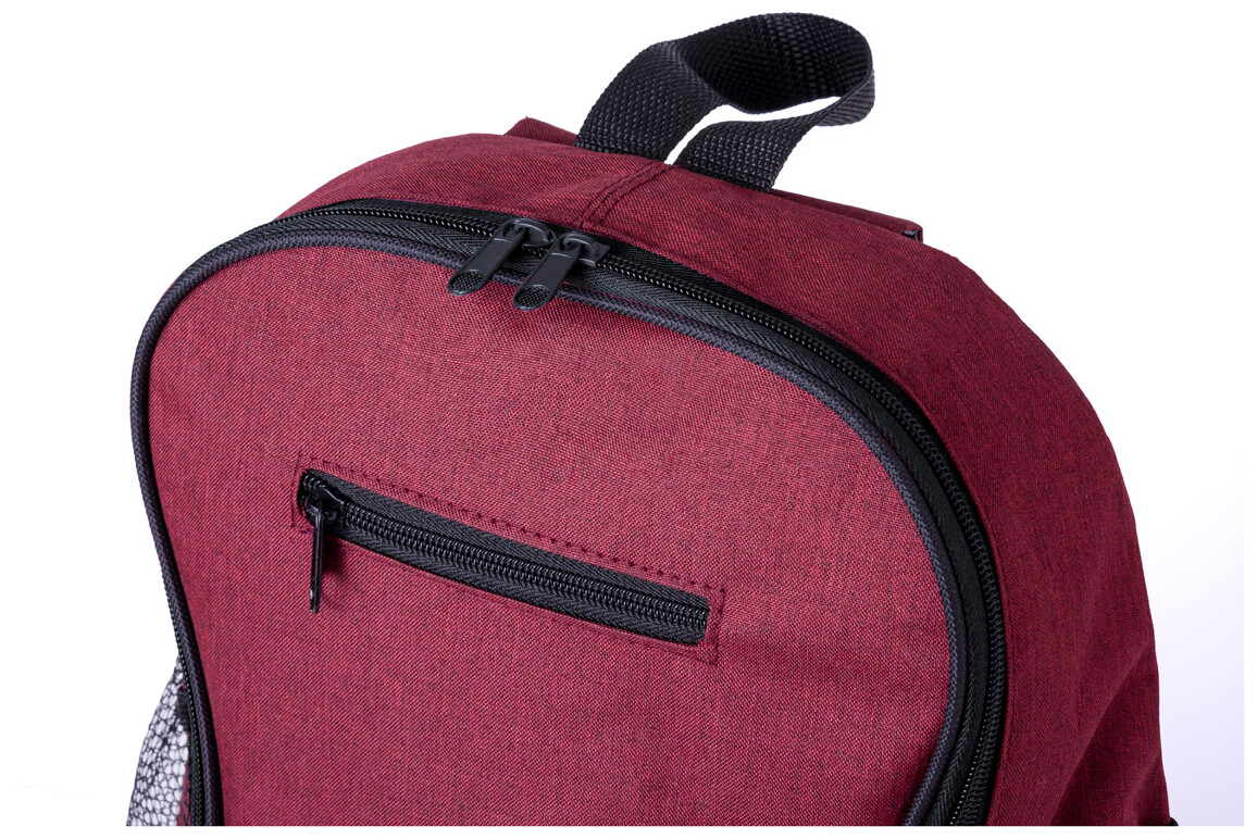 Batoh RPET s přihrádkou na zip a přední kapsou, boční síťované kapsy, polstrovaná záda a ramenní popruhy. 300D RPET polyester s výrazným štítkem RPET.