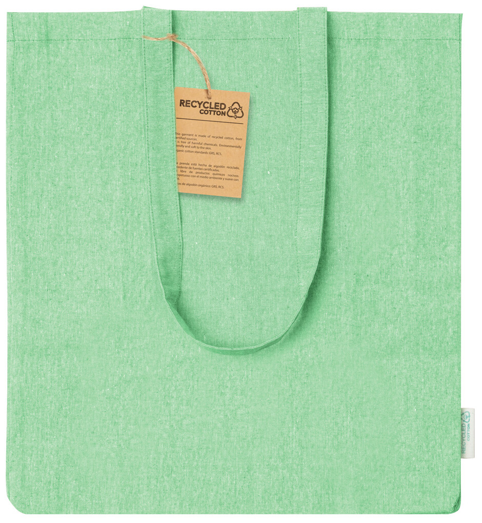 Nákupní taška z recyklované bavlny s klínem, dlouhými uchy a výrazným štítkem z recyklované bavlny. 100% recyklovaná bavlna, 140 g/m2.