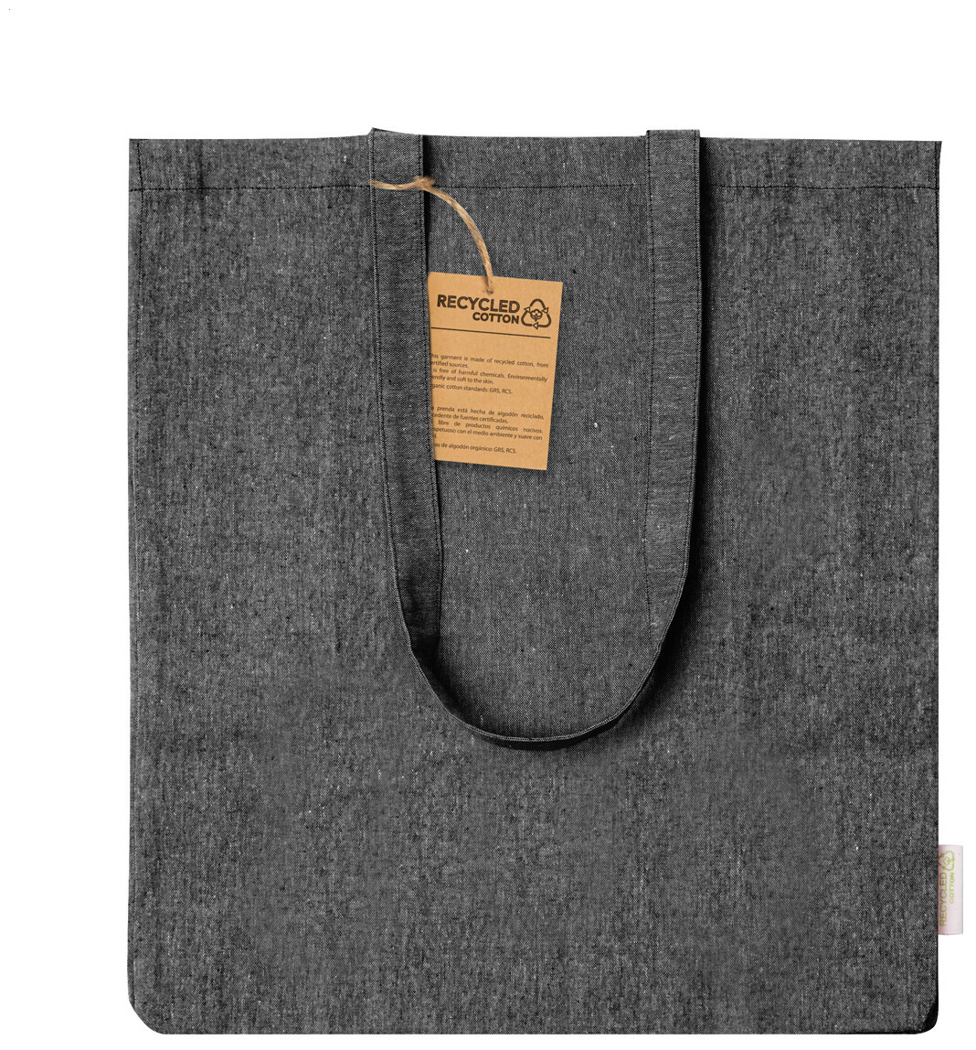 Nákupní taška z recyklované bavlny s klínem, dlouhými uchy a výrazným štítkem z recyklované bavlny. 100% recyklovaná bavlna, 140 g/m2.