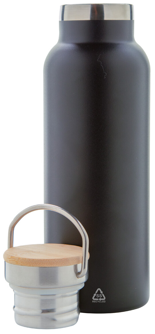 Dvoustěnná vakuově izolovaná termoska z recyklované nerezové oceli s bambusovým víčkem. 500 ml.
