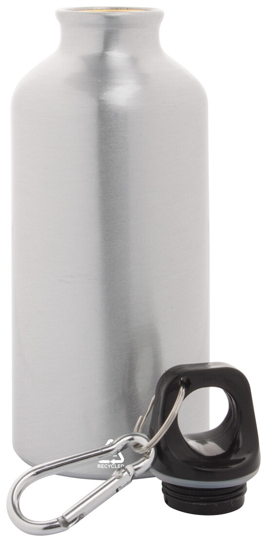 Láhev z recyklovaného hliníku s karabinkou z recyklovaného hliníku, 400 ml.