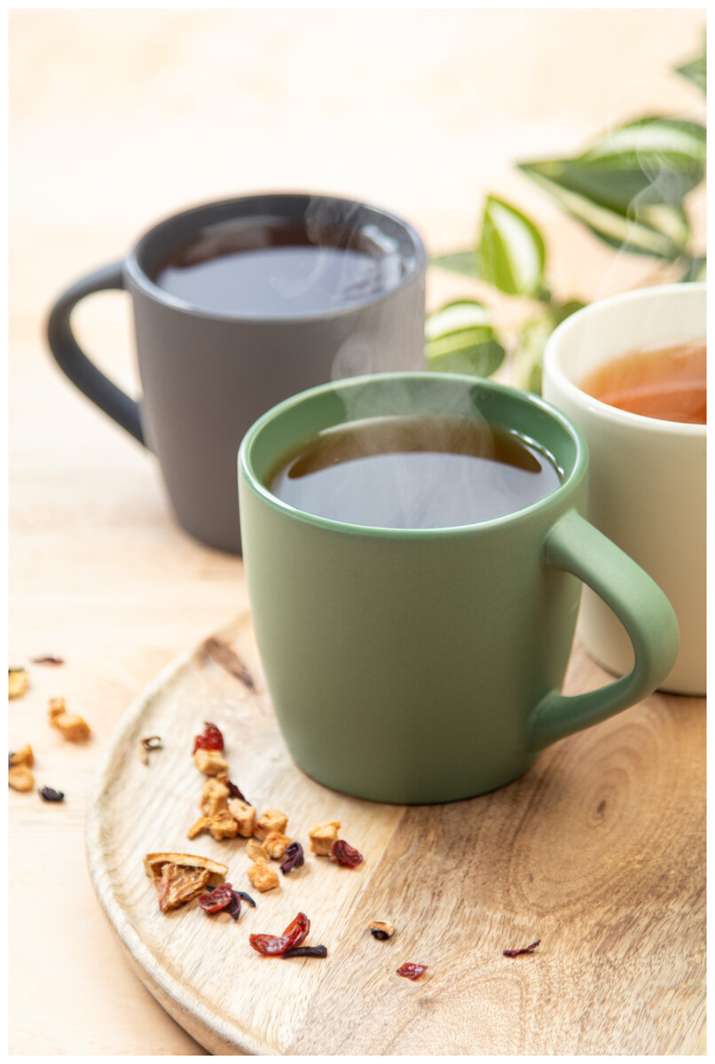 Vysoce kvalitní keramický hrnek s matnou vnější a lesklou vnitřní povrchovou úpravou, 300 ml. V kraftové papírové krabici.