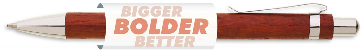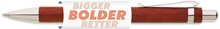 Rovné tělo z tmavě probarveného dřeva doplňují chromové doplňky. Velkoobsahová náplň modře píšící. Kolekce SAVE THE NATURE.