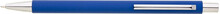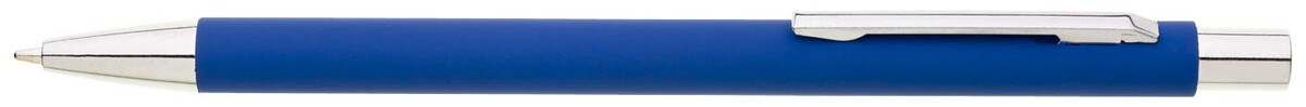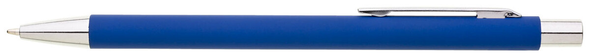 Tenká, jednoduchá propiska s modrým pogumovaným tělem a chromovými doplňky. Náplň X20, modře píšící.