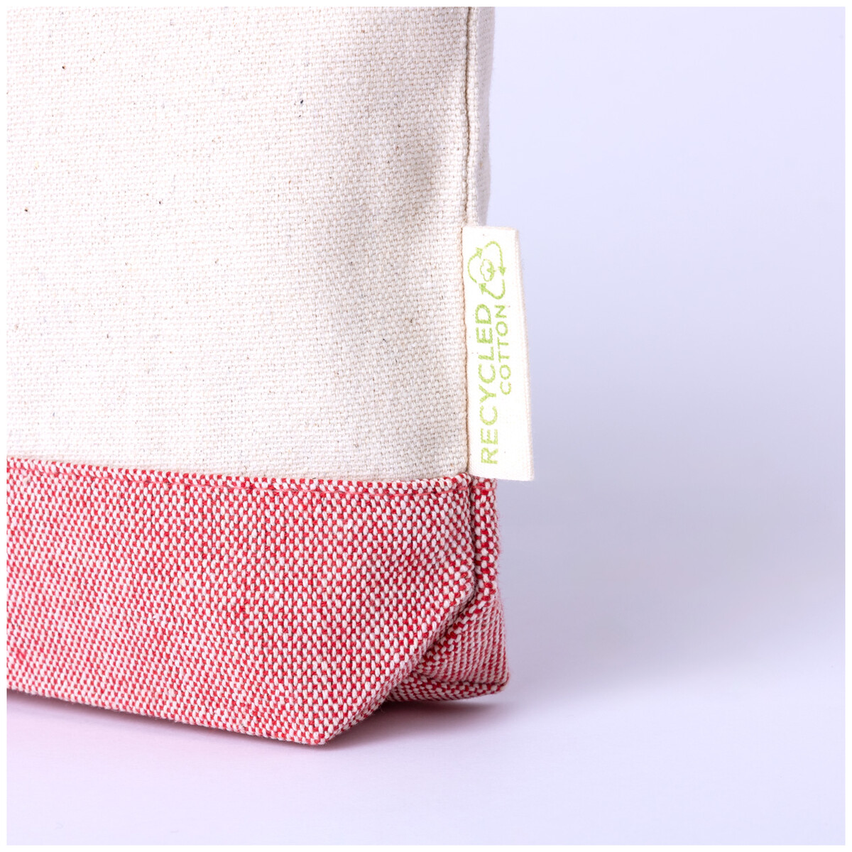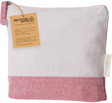 Dvoubarevná kosmetická taštička z recyklované bavlny na zip. 100% recyklovaná bavlna s výrazným štítkem z recyklované bavlny.