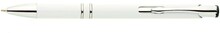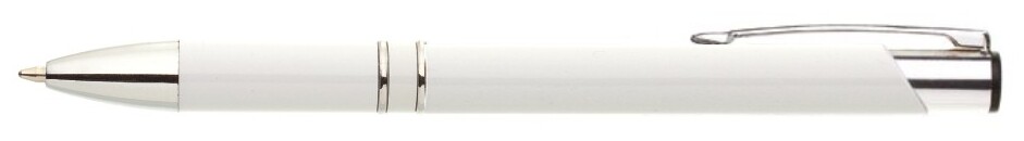Plastové propisovací pero OIRA BLACK - bílé. Pero je zdobené dvěma stříbrnými proužky. Na těle je zdobeno oválným výřezem. Pero má náplň velkoobsahovou, černě píšící.