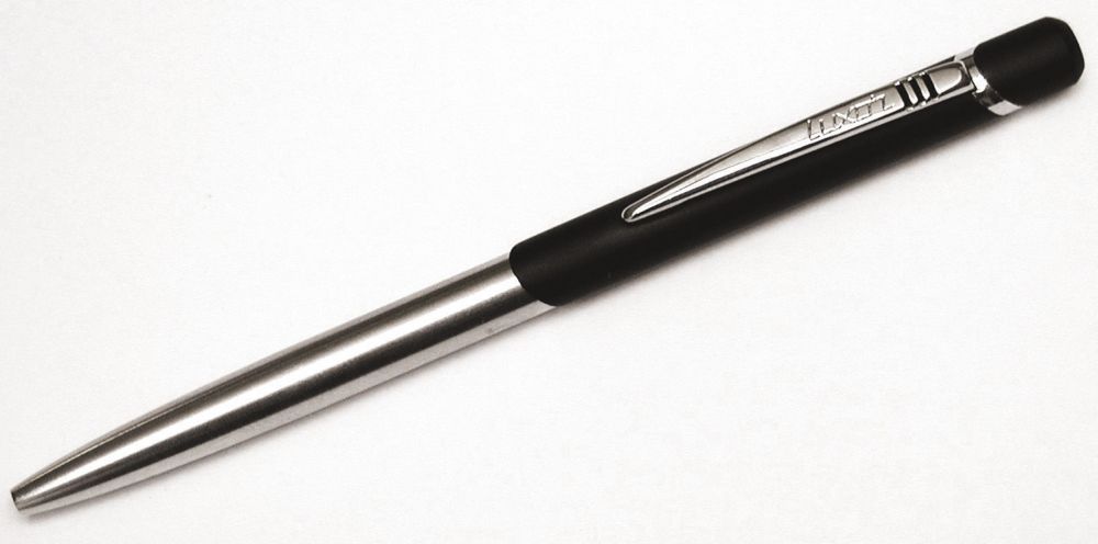 Kuličkové pero s mačkacím mechanismem. Odolné kovové provedení. Štíhlé tělo ve kominaci stříbrné a černé. Elegantní moderní design. Vhodné pro reklamní potisk. Výjimečná kvalita inkoustu zajišťuje perfektní psací vlastnosti. Vyměnitelná náplň s vrtulkou v modré barvě.