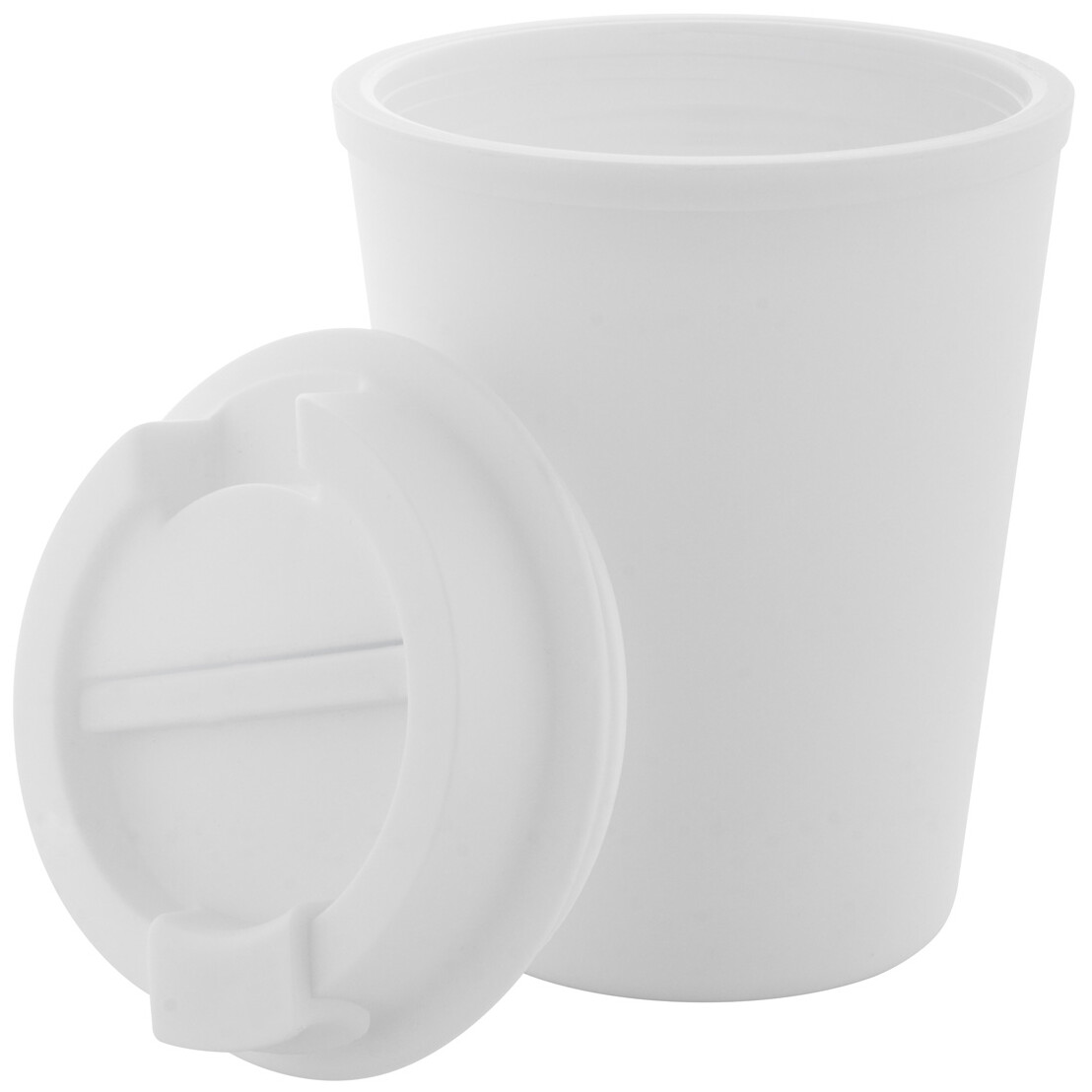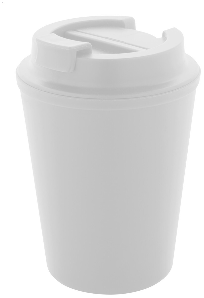Dvoustěnný termo hrnek z recyklovaného PP plastu s víčkem na pití. 300 ml.