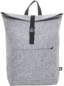 Batoh na rolování z plsti RPET s hlavní přihrádkou na přezku a přední kapsou na zip, přihrádkou na notebook (15") a polstrovanými ramenními popruhy. S výrazným štítkem RPET.