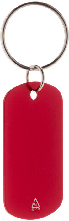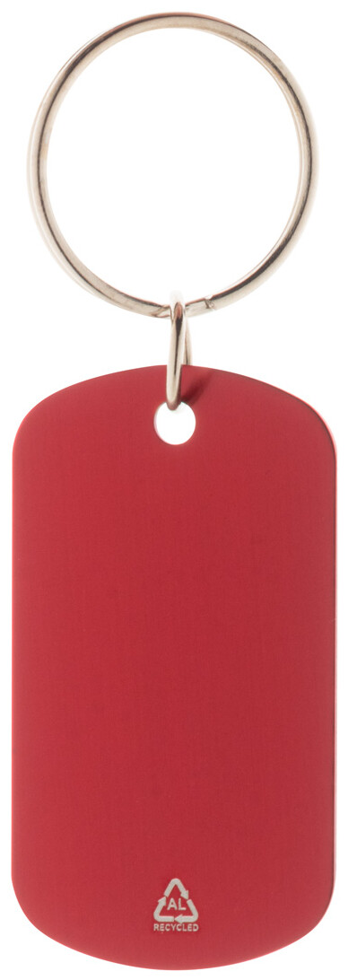 Přívěšek na klíče z recyklovaného hliníku s kovovým kroužkem.