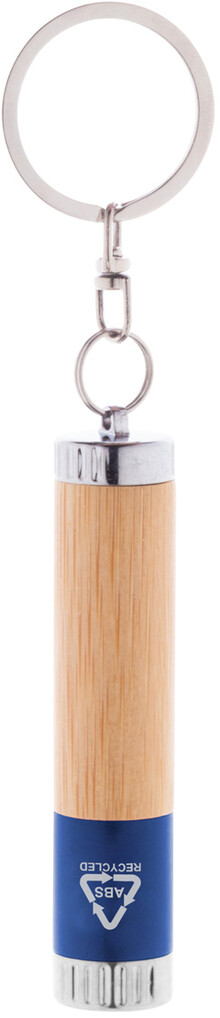 Mini svítilna z bambusu a recyklovaného ABS plastu s 1 LED a kovovým kroužkem na klíče. S knoflíkovou baterií.