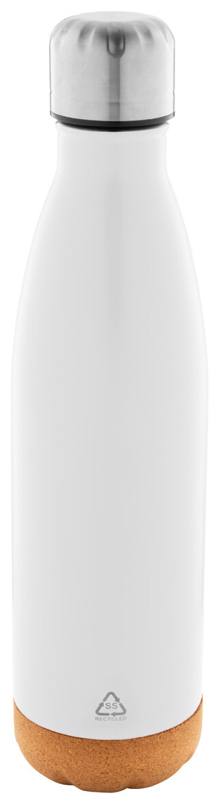 Dvoustěnná vakuově izolovaná láhev z recyklované nerezové oceli s přírodním korkem. 500 ml.