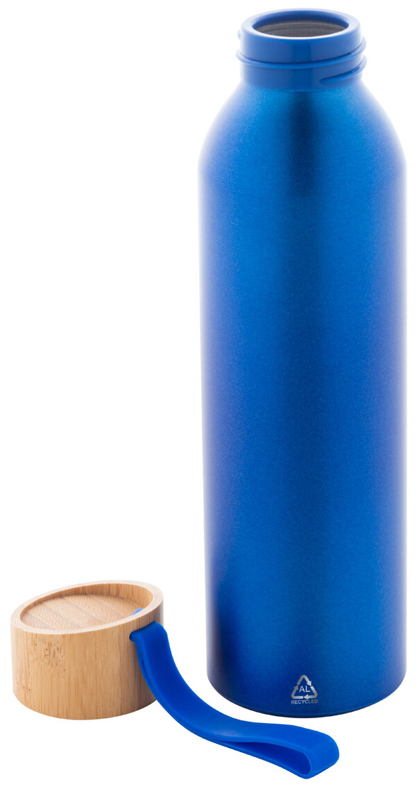 Láhev z recyklovaného hliníku s bambusovým víčkem a silikonovým popruhem v odpovídající barvě, 600 ml.