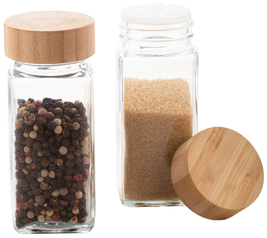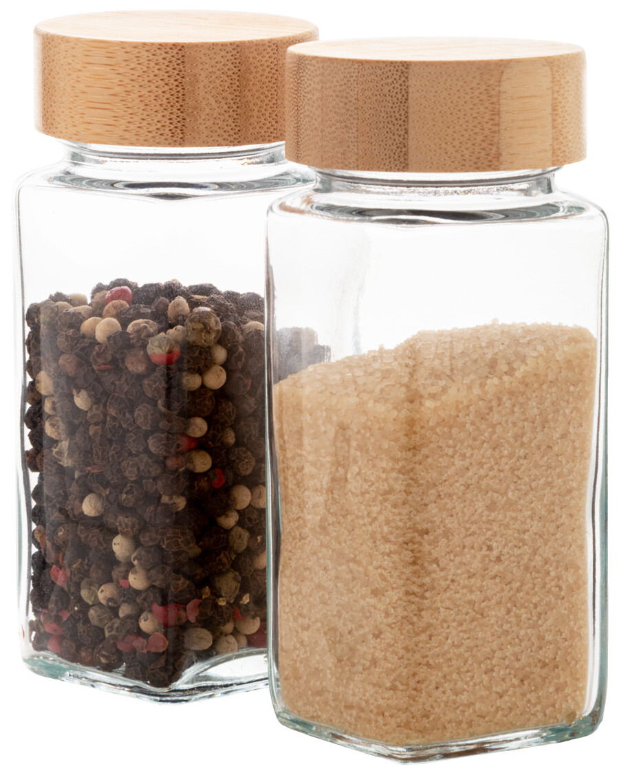 Sada 2 ks skleněných kořenek s bambusovým víčkem, 120 ml. V kraftové papírové krabici.