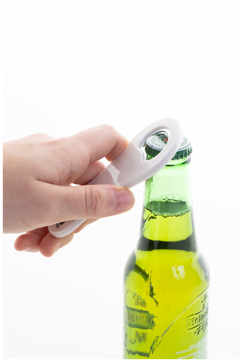 Otvírák na láhve z recyklovaného ABS plastu s magnetem na lednici.