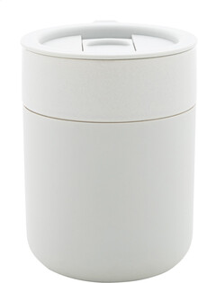 Silikonem potažený keramický cestovní kelímek s PP plastovým odkapávacím víčkem. 300 ml.