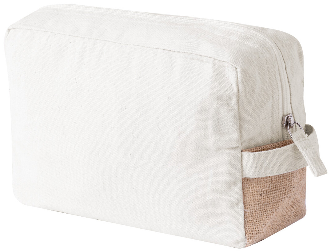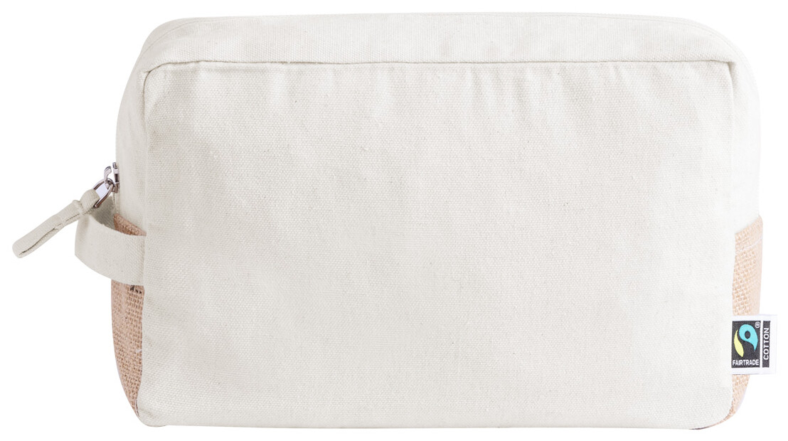 Kosmetická taštička na zip z Fairtrade bavlny a laminované juty, s výrazným Fairtrade štítkem. 100% Fairtrade bavlna, 180 g/m2.