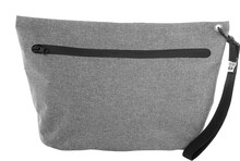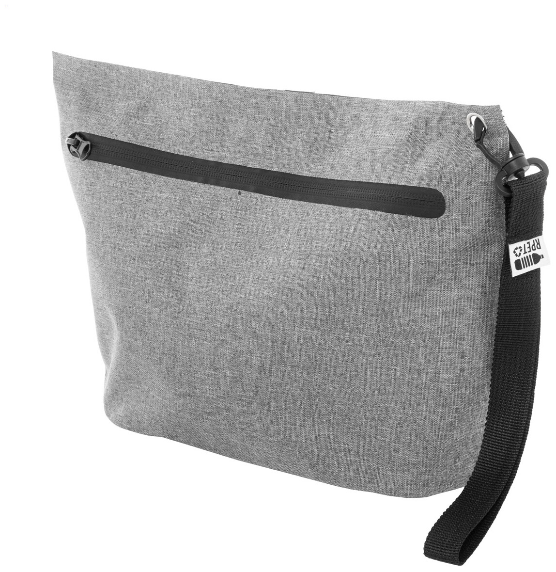 Vodotěsná kosmetická taštička na zip z 300D RPET polyesteru s karabinou na zápěstí. S výrazným štítkem RPET.