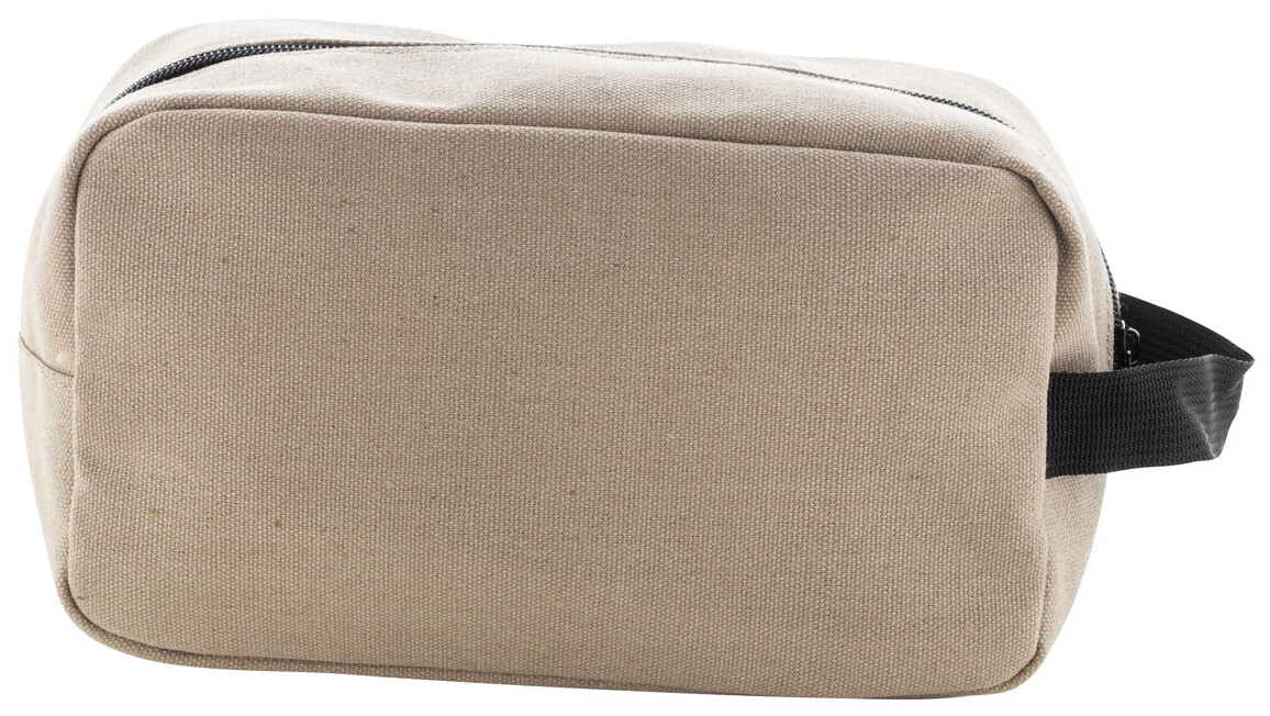 Kosmetická taštička z recyklovaného plátna se dvěma přihrádkami na zip a rukojetí. 70% recyklovaná bavlna a 30% RPET polyester. S výrazným štítkem z recyklované bavlny.
