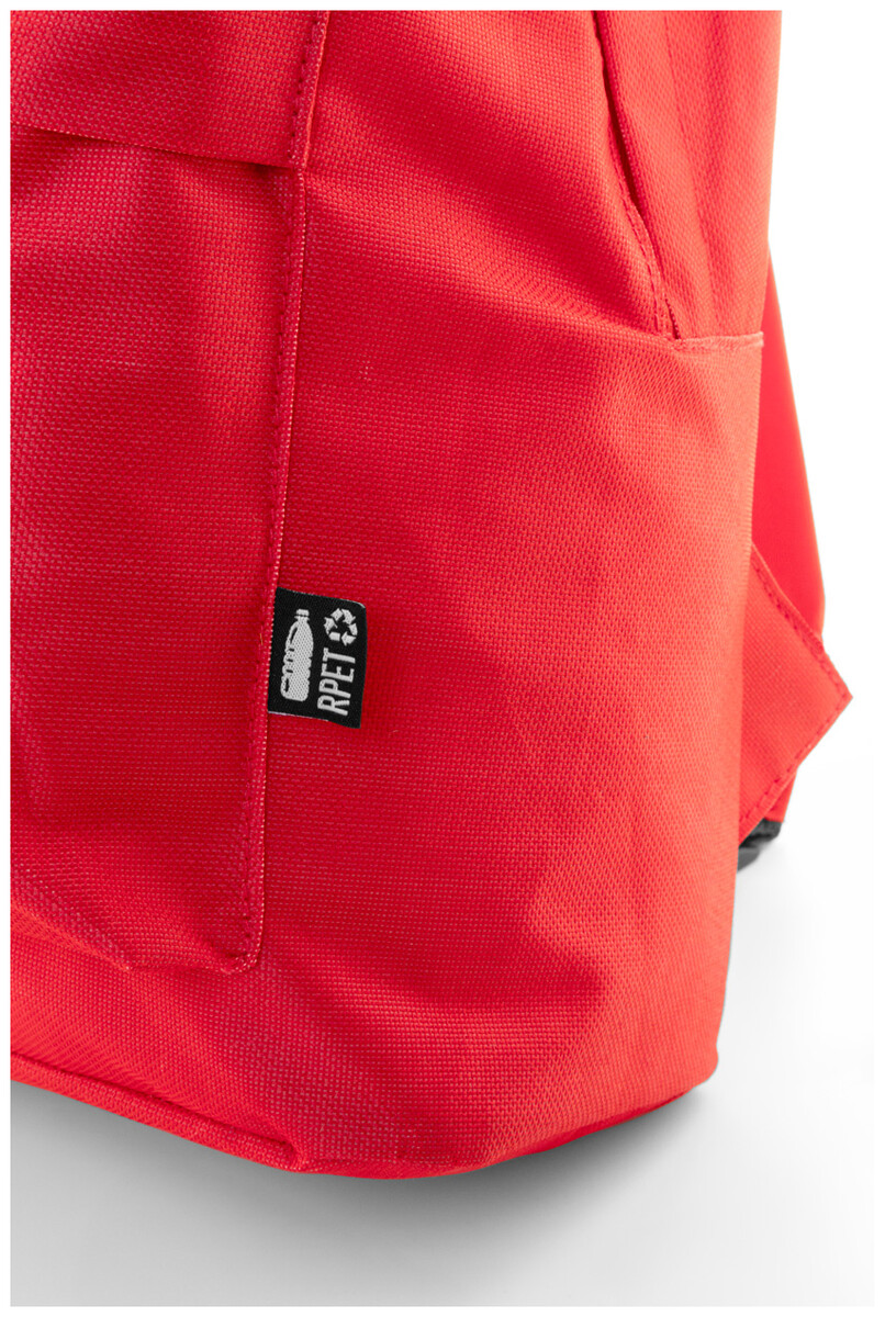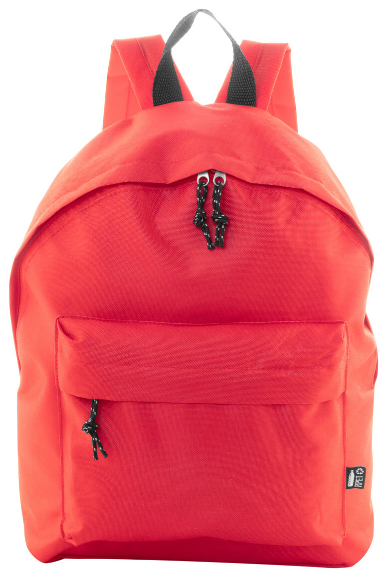 RPET batoh s hlavním prostorem na zip, přední kapsou na zip, polstrovanými zády a ramenními popruhy. Polyester 600D RPET, s výrazným štítkem RPET.