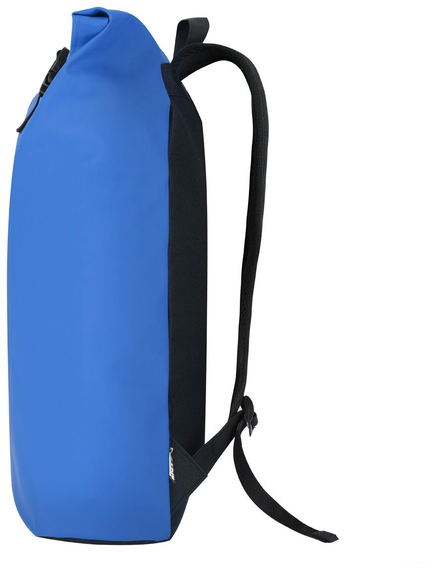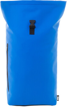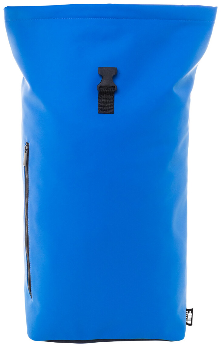 Vodotěsný, měkký rolovací batoh z recyklované PU kůže se zapínáním na přezku, přední kapsou na zip a polstrovanou přihrádkou na notebook (15"). S polstrovanými zády a ramenními popruhy. S výrazným recyklovaným PU štítkem.