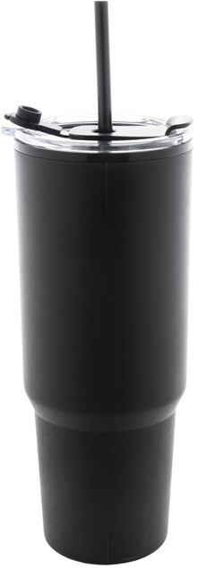 Dvoustěnný termo hrnek izolovaný PP plastem s víčkem na pití a brčkem. 1100 ml.