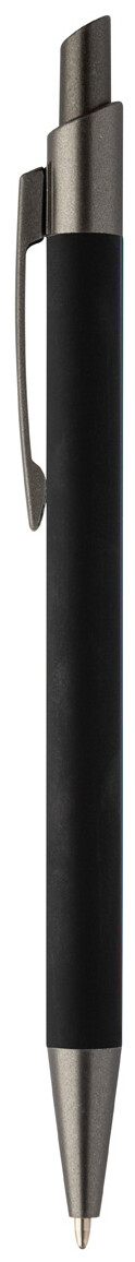 Kuličkové pero z recyklovaného hliníku s pogumovaným tělem a kovovými částmi. S modrou náplní.