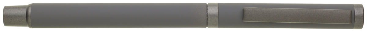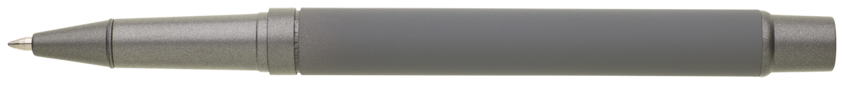 Elegantní kovový roller RIFLO SOFT v šedé barvě s tmavě šedými doplňky a pogumovaným povrchem. Náplň v rolleru píše modře.